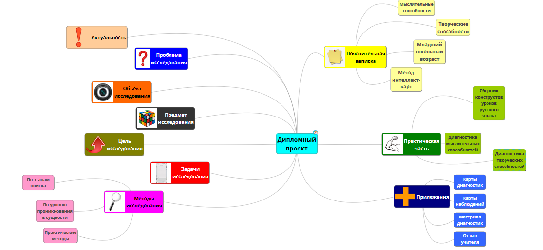 Вероятно, Вас слегка удивила обложка к данной статье. Нет, речь не пойдёт ни о каких дипломных проектах. Эта схема лишь для примера. Она даже имеет своё особое название - "интеллект-карта". А для чего она нужна, сейчас расскажу!