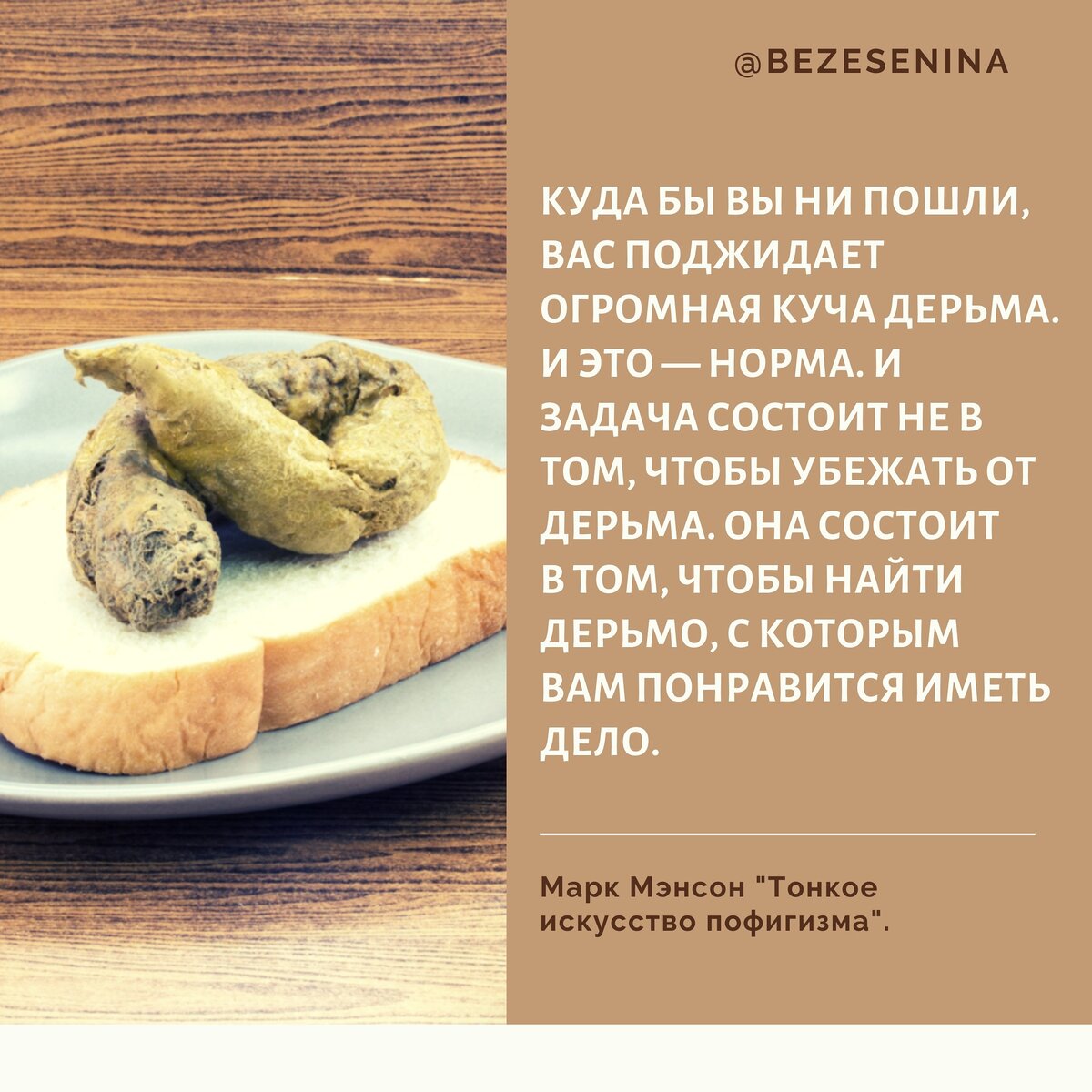 Цитаты про какахи подъехали.😅⠀ ⠀ А если без шуток, то я бы хотела помнить об этом в моменты, когда дерьмо случается в моей жизни.⠀ ⠀ Вместо того, чтобы рыдать и биться головой об стену, засучить рукава, взять лопату в руки со словами:"Это просто очередная огромная куча говняшек. Ничего нового".💪⠀ ⠀ Ребята, желаю Вам найти то, о чём пишет автор.💙⠀ ⠀ P.S. Эту книгу можно выиграть, если поучаствовать в конкурсе моего одноименного Инстаграма - @bezesenina ⠀