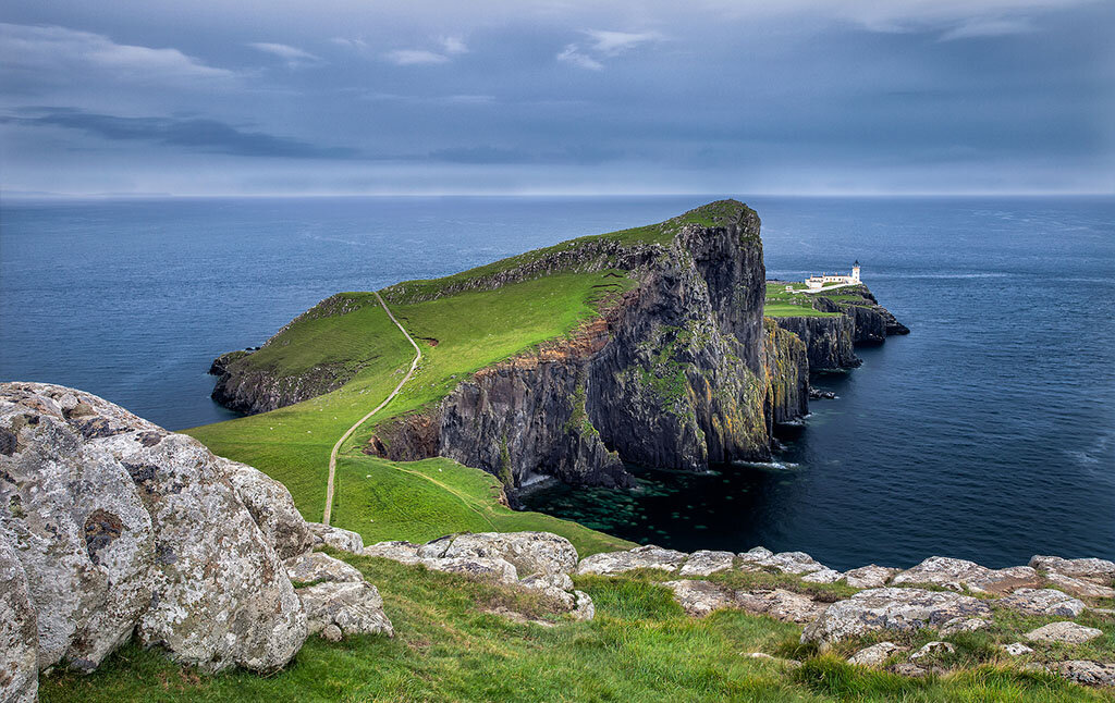 В западной части острова Скай возвышается маяк, открытый в 1909 году, который признан одним из самых красивых маяков в мире. Его высота составляет 43 метра, и в наши дни он продолжает функционировать в атематическом режиме. Туристы тянутся к нему, чтобы полюбоваться потрясающими воображение видами на изумрудные шотландские холмы или понаблюдать за китами и дельфинами, которые иногда показываются у этих берегов. Рядом с маяком расположены жилые здания, но вход в них закрыт, потому что они принадлежат частным лицам. Здесь царит поистине умиротворяющая атмосфера и получаются волшебные фотографии, но приходить сюда следует ранним утром, потому что в течение дня здесь всегда полно туристов.