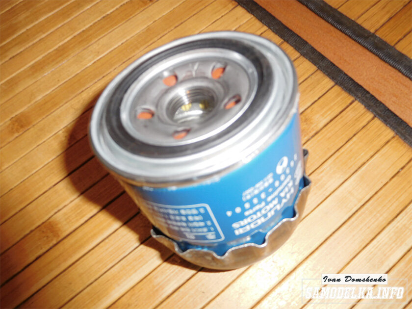 Сегодня у нас новая полезная самоделка для авто: самодельный съемник масляного фильтра для Hyundai Solaris Пересмотрел в интернете самоделки, связанные с изготовлением съемников, для масляных фильтров автомобилей, много имеется всяких версий, но практически все они связаны со сварочными работами, хотя и интересные. У автомобиля ХЕНДЕ СОЛЯРИС масляный фильтр расположен вертикально, причем, очень небольшое расстояние от боковой стенки фильтра до корпуса блока цилиндров, что не позволяет использовать многие универсальные съемники. Мне попался на глаза поварской половник с оторвавшейся рукояткой и, возникла мысль, а не попытаться ли изготовить из него съемник масляного фильтра? Материал прочный – нержавеющая сталь. Наверное, диаметры половников разные, но у меня попался половник диаметром большим миллиметров на 8 чем диаметр масляного фильтра СОЛЯРИСА. У фильтра на днище имеется 15 граней поэтому я аккуратно разметил диаметр половника на 15 частей и нанес риски. Половник имеет небольшую к