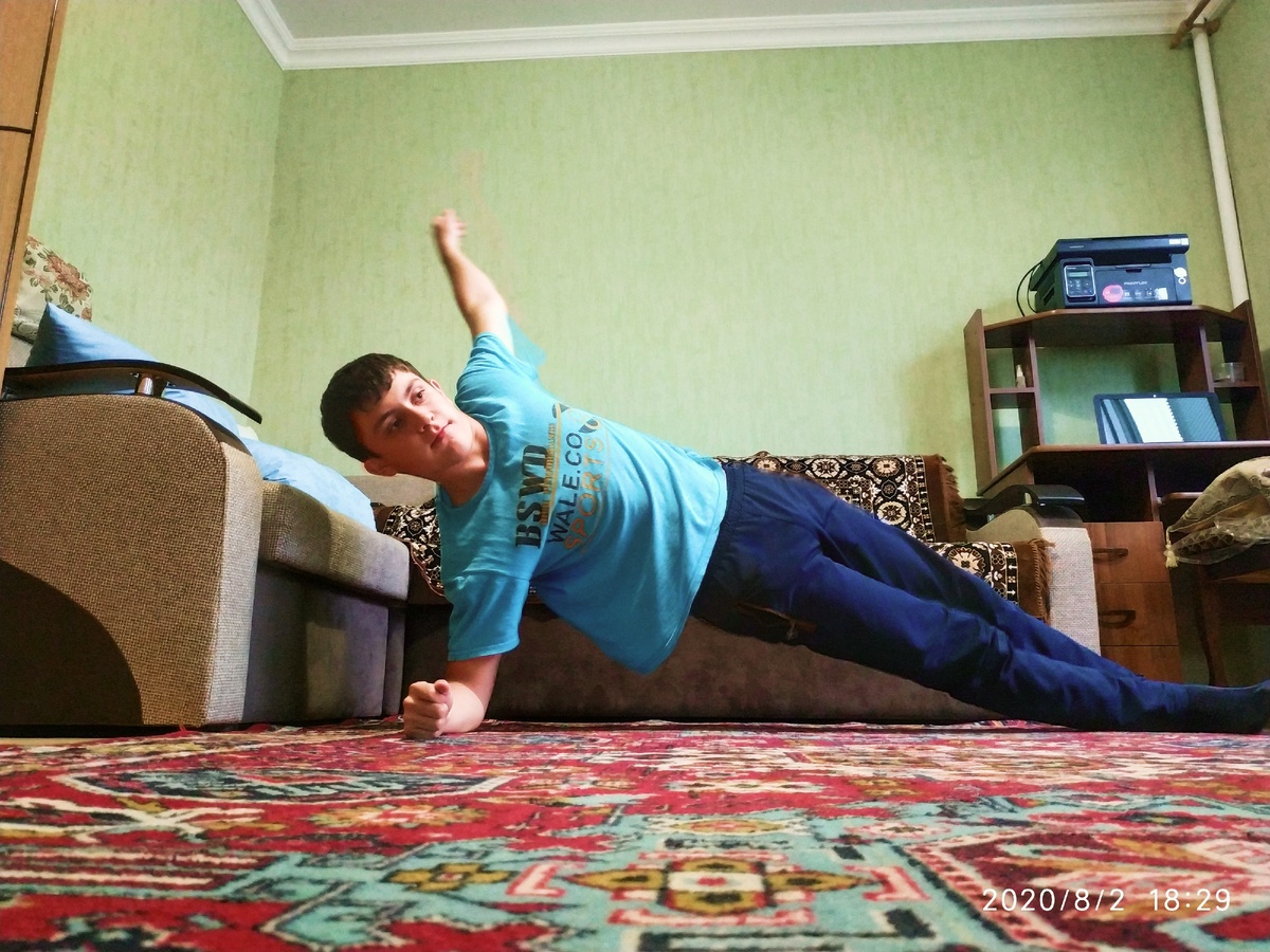 Приветствую вас дорогие читатели. За время своих тренировок я перепробовал кучу разных упражнение прокачивающих боковые мышцы живота. И среди множества перепробованных мною упражнений я выделил 2 самых наилучших варианта, которые подойдут, как начинающим, так и продолжающим спортсменам, а также расскажу об правильном исполнении тренировки и о своём опыте их использования. Боковая планка со скручиванием. Первое упражнение подойдёт людям у которых нет времени и средств посещать спортзалы, или нет средств на покупку оборудования. Данное упражнение вы сможете выполнить даже не выходя из дома. Оно заставит вас почувствовать работу и жжение в ваших мышцах уже в первые 30 секунд, я считаю данное упражнение одним из лучших на боковые мышцы живота поскольку, оно одновременно выполняет функцию боковой планки и при этом вы выполняете повороты туловищем, что даёт дополнительную нагрузку. Техника исполнения. 1) Примите позу обычной планки, затем повернитесь в бок. 2) После того, как вы приняли поз