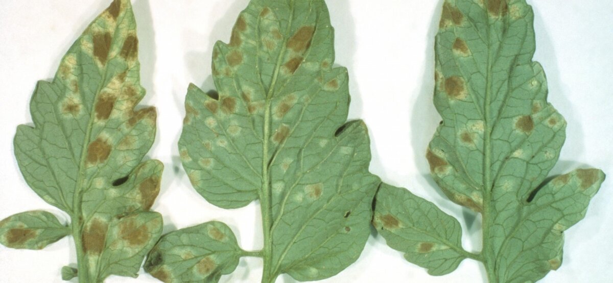 Эта болезнь выходит наружу в середине июля(во второй половине лета) и обычно в теплицах. На верхней стороне листьев появляются пятна. С нижней стороны листа образуется налёт.