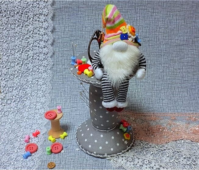 Предлагаю Вашему вниманию - новую игольницу, назвала ее "Катушка с Гномом" , не знаю, как у Вас, а у меня она вызывает улыбку))))))))