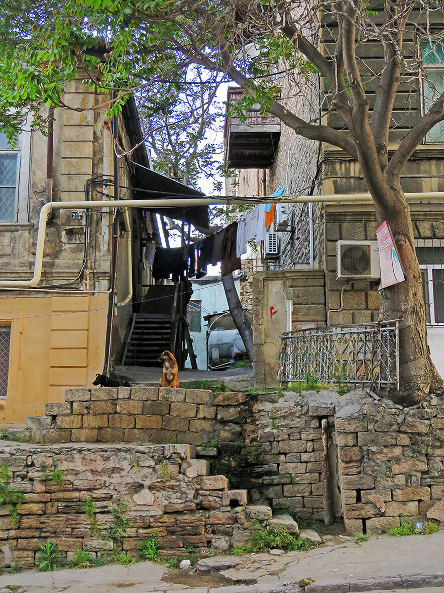 В нём рано утром по прилёту началось моё знакомство с городом, и даже на фоне прочего Баку архитектура здесь какая-то особенно колониальная: