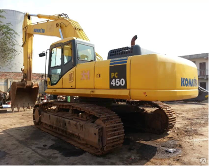 ОСНОВНЫЕ ХАРАКТЕРИСТИКИ Рабочий вес, кг: 44000 Объем стандартного ковша, m3 /1.9 Ширина стандартного ковша, mm РАЗМЕРЫ Длина общая, mm (A): 12040 Радиус задней части, mm (B): 3645 Ширина траков, mm (C): 600 Длина трака, mm (D): 4020 Длина гусеницы, mm ((D)): 5055 Ширина ходовой части, mm (E): 2990,3490(VS) Ширина колеи, mm (F): 2890 Общая высота, mm (G): 3635 Общая ширина, mm (H): 2990 Дорожный просвет (клиренс), mm(I) Длина стрелы (высота), mm: 3400 ДВИГАТЕЛЬ Марка двигателя: KOM Модель двигателя: SAA6D125E Мощность (KW(PS)/rpm): 246.4(335)/1850 Максимальное вращение (N-m(min-1): N/A Количество цилиндров: 6 Размер поршня: 125x150 Рабочий объем двигателя, л: 11.0 ГИДРАВЛИЧЕСКАЯ УСТАНОВКА Установка предохранительных клапанов (MPA): 34.8 Тип гидравлического насоса: PPP ПРОИЗВОДИТЕЛЬНОСТЬ Преодолеваемый подъем (deg): 35 Усилие на стреле (kn): /217.7 Усилие на ковше (kn): /258.9 Максимальна