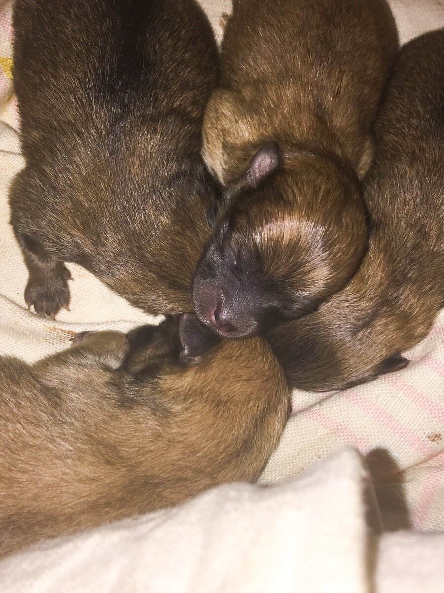 Наконец-то мы приняли роды у своей любимицы, на свет появилось шестеро прекрасных щенят! Большую часть времени я проводила возле Нюшиного родового гнезда и не отводила взгляда от девчонки-спасёныша (так я прозвала захлёбыша) мне казалось, что если всё держать под контролем, то всё будет хорошо. Я сидела рядом, слушала её частое сопение и от мысли что она самостоятельно дышит становилось немножко легче на душе. В тот момент я мечтала перемотать время на две недели вперёд, чтобы поскорее увидеть уже здоровую малышку, но время мучительно тянулось. Даже спать страшно было, лежанка со щенками стояла у моей кровати, среди ночи я часто подхватывалась и прислушивалась к похрюкиванию щенка.