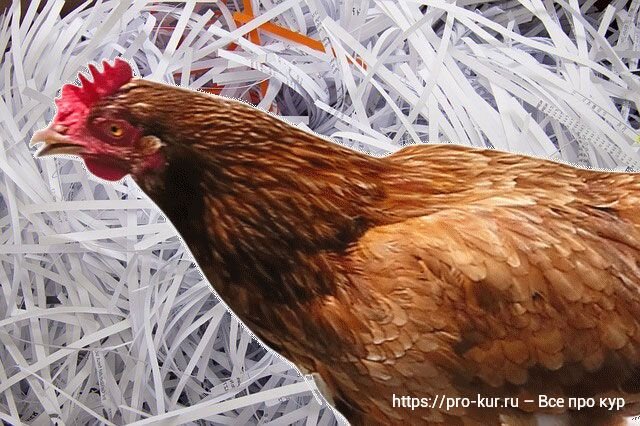 В зарубежной практике применяют также торфяно-опилочные смеси, резаную бумагу, синтетические материалы на основе пенополиуретана. На фото полоски бумаги в птичнике.