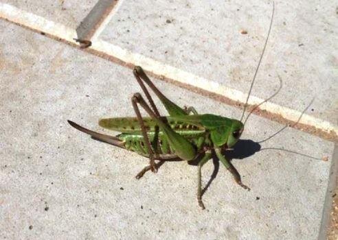 Если Вы неожиданно увидели в свое саду или огороде саранчу (или нечто на нее похожее), то первая мысль :"А это точно саранча? Может просто кузнечик?" Дело в том, что я недавно написала статью про способ отпугнуть из сада мышей, кротов, медведок... Но в комментариях читатели стали присылать фото мелкой живности, которую они встретили у себя. Это впечатляет. Кто-то поймал летучую мышь, или жука, размером в 10 сантиметров. Кто-то слизня такого большого, что смотреть неприятно. И так далее. И мне вспомнилась моя статья, которую я написала два года назад. Она содержала простой вопрос :"Кузнечик или саранча?". Дело в том, что кузнечиков мы по-привычке совсем не боимся. Они нам напоминают милую детскую песенку "В траве сидел кузнечик, совсем как огуречик, зелененький он был...". И вот... Как в песенке, представьте себе, что я тогда увидела кузнечика, но только очень большого. Он на верхнем фото в статье. А осенью мне в саду попалась и прежде невиданная саранча, вот она: У саранчи короткие ус