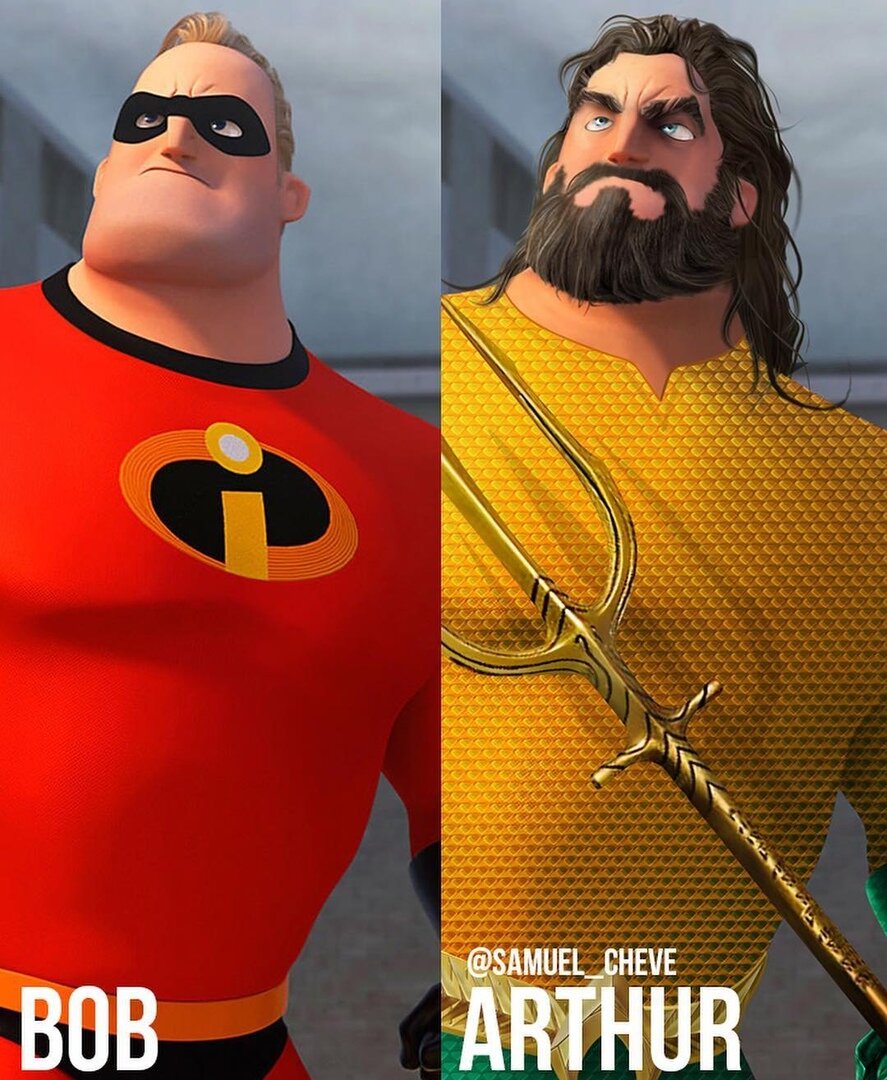 Привет, если Вам понравится материал, поставьте пожалуйста лайк или оставьте любой комментарий, спасибо! Так Вы поможете в развитии канала. О перевоплощении героев Disney в супергероев Marvel мы увидели здесь, теперь давайте познакомимся с изменениями героев из мультфильма "Супер-семейка" и их превращение супергероев из вселенной DC. 1. Начнем с одного из самых кассовых фильмов DC, который в прокате собрал более 1 млрд $ - Аквамен. Боб в образе Артура "Аквамен" Мера 2. Второй по популярности герой DC - Чудо-Женщина Как видит художник От него же, но в других образах Диана 3. Киборг, Виктор Ждете сольный фильм о Киборге? Надеюсь, Зак Снайдер в новой Лиге Справедливости раскроет персонажа лучше. 4. Флеш 5. Боб в роли Супермена (Генри Кавил) 6. Лига Справедливости 7. Харли Квинн Источник: samuel_cheve Другие статьи: Художники создали комиксы о самоизоляции Милые комиксы о космосе и планетах Художник рисует добрые комиксы, которые будут понятны без слов 5 Самых богатых а