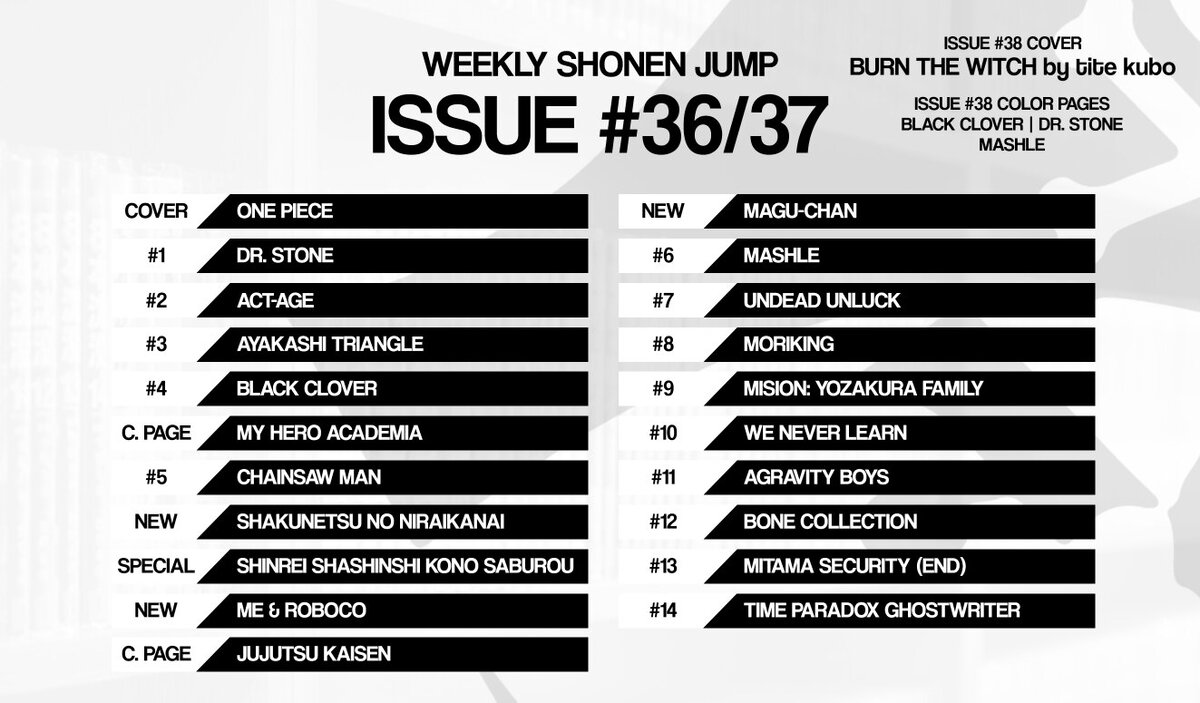 Пришел четверг, а значит, время свеженького рейтинга манги Сёнен Джампа. Текстовый вариант: Общая обложка (Главные персонажи всех манг)