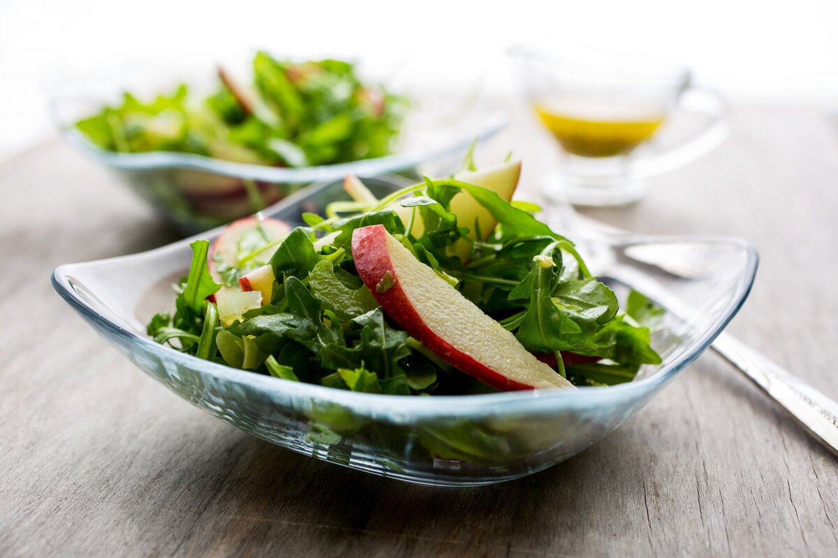 Зеленый салат из рукколы с грушей в гранатной заправке. Рецепт протокола АИП!