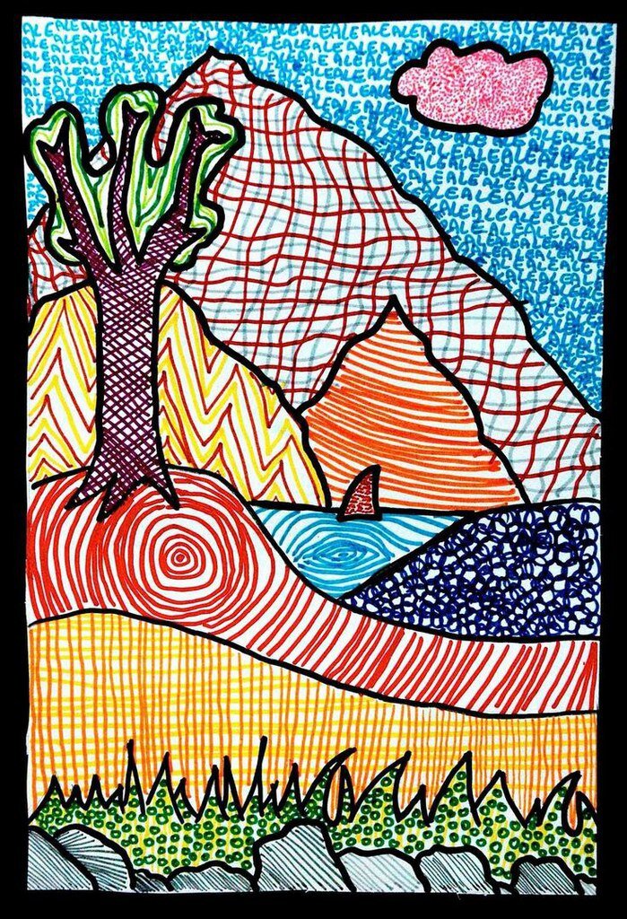 Есть 2 способа для рисования в стиле зентанг-пейзаж. Первый, сразу на листе рисовать линии холмов, гор, полей. Второй, рисовать узоры отдельно. Затем вырезаем и накладываем друг на друга. Получается очень красиво.