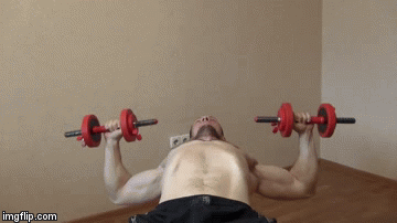 Грудные мышцы отлично поддаются тренировке гантелями, и арсенал упражнений, который вы сможете выполнять- достаточно велик. Для тренировки груды подходит средний вес гантель. Для новичков, как правило, он составляет 10-15 кг. Но здесь многое будет зависеть от ваших физических данных. Упражнения с гантелями для грудных мышц мужчине.Разведение гантелей лежа. Это одно из самых эффективных мужских упражнений для грудных мышц с гантелями. В отличии от других движений, здесь из работы выключены второстепенные мышцы (трицепс) и вся нагрузка уходит на грудь. Если говорить об анатомии, то это на 100% верное движение, за которое отвечают грудные мышцы (приведение плеча к корпусу). Я рекомендую всегда включать это движение в программу тренировок, не зависимо от того где вы занимаетесь, в зале или в домашних условиях. Дома оно может выполняться либо на специальной скамье, либо на стуле, как это делаю я, на изображении. Жим гантелей лежа. В отличии от разведения лежа, при жиме, в работу кроме г