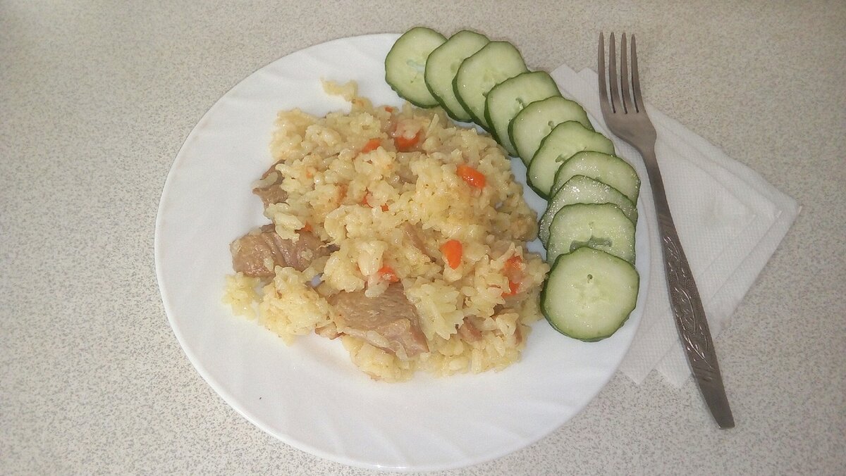 МегаВкуснющий плов с индейкой Это действительно вкусно . Когда я решила сделать плов с индейкой, я и представить не могла , что получиться так вкусно. Ловите рецептик. Ингридиенты; - мясо индейки -600-700гр; -рис-1 стакан; -лук репчатый -1 шт крупный; -морковь -1шт крупная; -чеснок- 2 зуб; -специи, соль. Приготовление; Мясо индейки промыть, убрать лишнее. Тушить на растительном масле почти до готовности. Затем добавить нарезанный лук и морковь и готовить до полуготовности лука. Добавить рис( у меня в это раз османа) и чеснок. Добавить два стакана воды, накрыть крышкой и готовить примерно минут 20 на среднем огне. Затем отрыть , помешать, при необходимости добавить воды, добавить ваши любимые приправы и соль. Я добавила приправу для плова и не много куркумы. Накрыть крышкой и довести до готовности. Я обычно выключаю когда еще остается не много жидкости и рис слегка сыроват. Накрываю крышкой, а сверху полотенцем и жду минут 30-40. Ну а потом открываю и перемешиваю. Мне кажется он так
