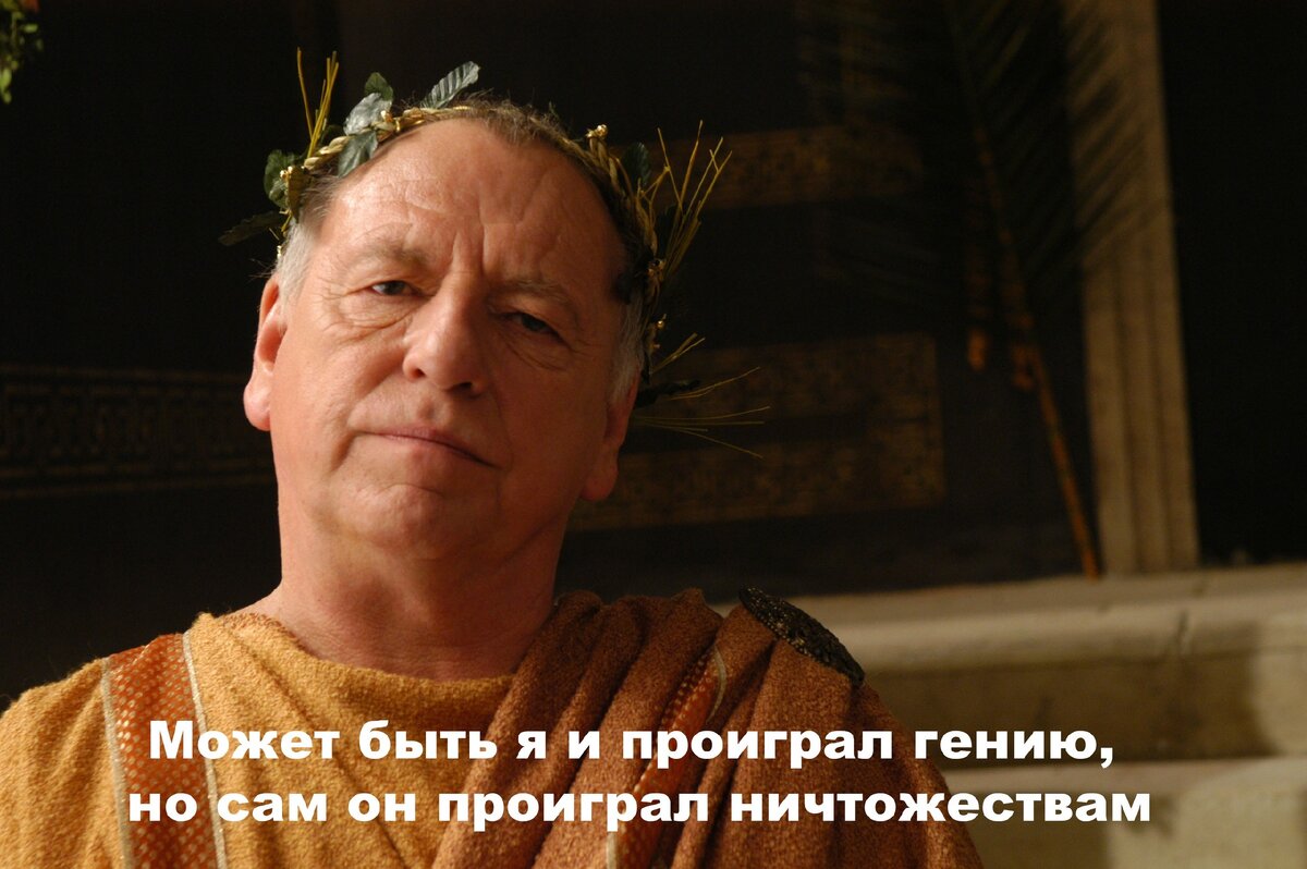 И что он делает, когда Сенат не даёт ему и консульства и триумфа, заставляя выбирать что-то одно? Он отдаётся во власть Сената. Да, это проигрыш, в первую очередь как политика, так как он даёт тем самым своим противникам утереть сопли, собраться с силами и зачморить его в Сенате. Схему выбрали старую и эффективную - разбор полётов в Сенате с жёстким разносом. Как Катон Старший в своё время убрал Сципиона, теперь Катон младший, Метеллы и примкнувший к ним Лукулл пытаются убрать Помпея. А наш республиканец стоит до конца, сражаясь в уже проигранной битве.