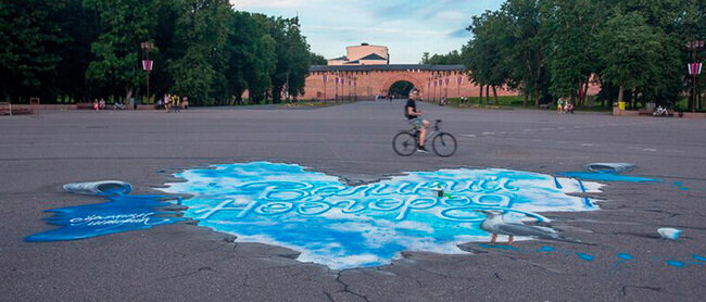 Что интересно, даже в областном министерстве спорта и молодёжной политики заранее не знали, как и что будут «выдрачивать» райтеры. Корреспонденту ТАСС было сказано: «На муралах будут картины, связанные с историей Новгородской земли. Художники пока не раскрывают подробностей сюжетов, которые планируют изобразить». Вот она, свобода творчества! Без барьеров.
