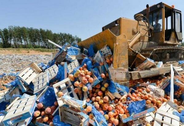 C 6 августа 2015 года Россия уничтожила 36,17 тысячи тонн продукции, которая незаконно поступила из стран, подпавших под российское эмбарго, сообщает Россельхознадзор. В утиль было отправлено 34,94 тыс. тонн продукции растениеводства и 1,23 тыс. тонн - животноводства. Только за семь месяцев текущего года уничтожено 1,89 тыс. тонн запрещенной к ввозу продукции, из нее 1,87 тыс. тонн - растительной. Продукция растениеводства чаще всего поступала под видом «товаров прикрытия» (кофе, пиломатериалы, оборудование) через страны-члены Евразийского экономического союза (ЕАЭС, помимо России - Армения, Белоруссия, Казахстан, Киргизия).