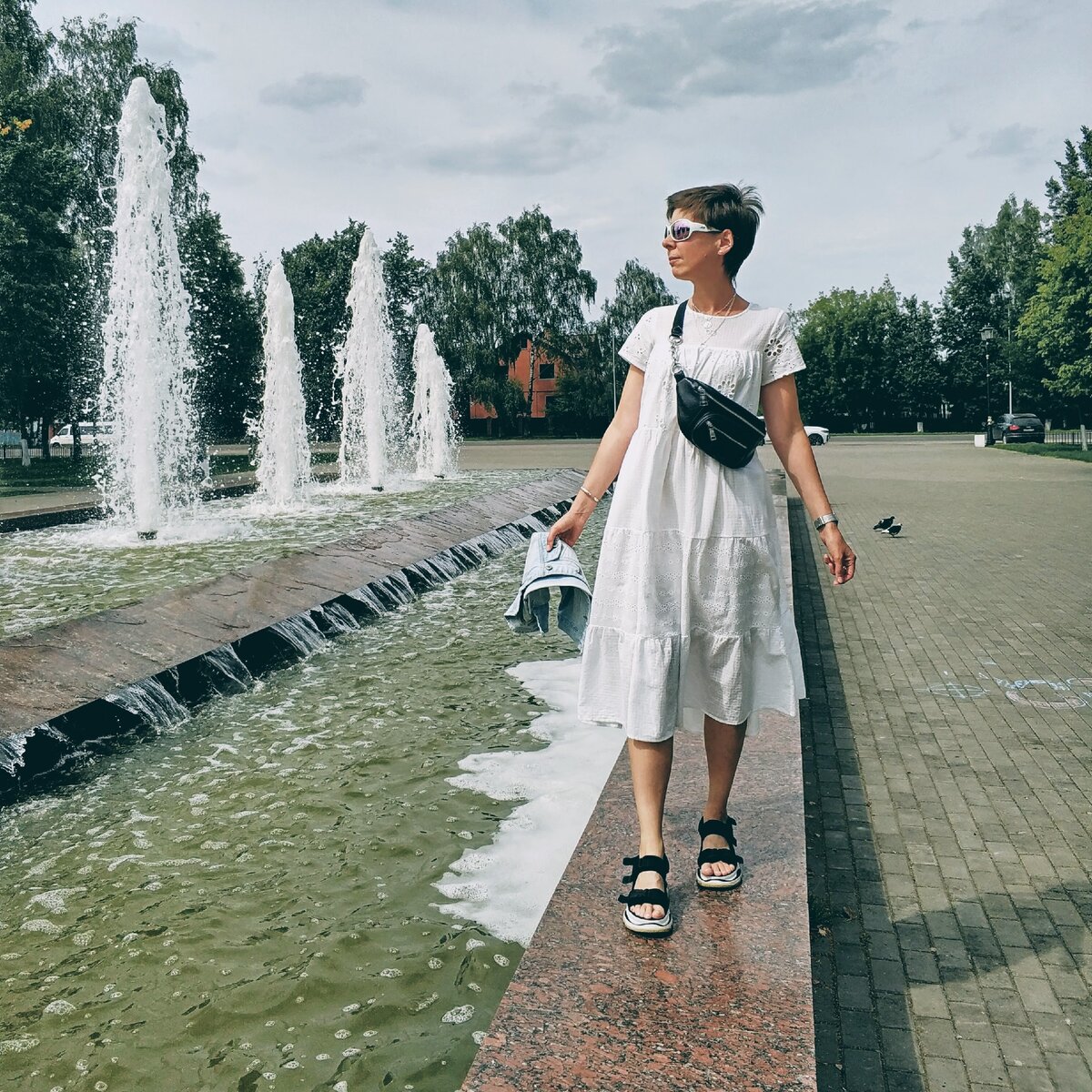 Платье молочно-белое и абсолютно простое. О таких говорят - чистый лист. Мол, дополняй любыми аксессуарами. Но я почему-то не хочу его дополнять и украшать. Мне нравится его девственная простота. Оно кажется мне самодостаточным, как ни странно. Наверное, мне просто день обвешиваться😁