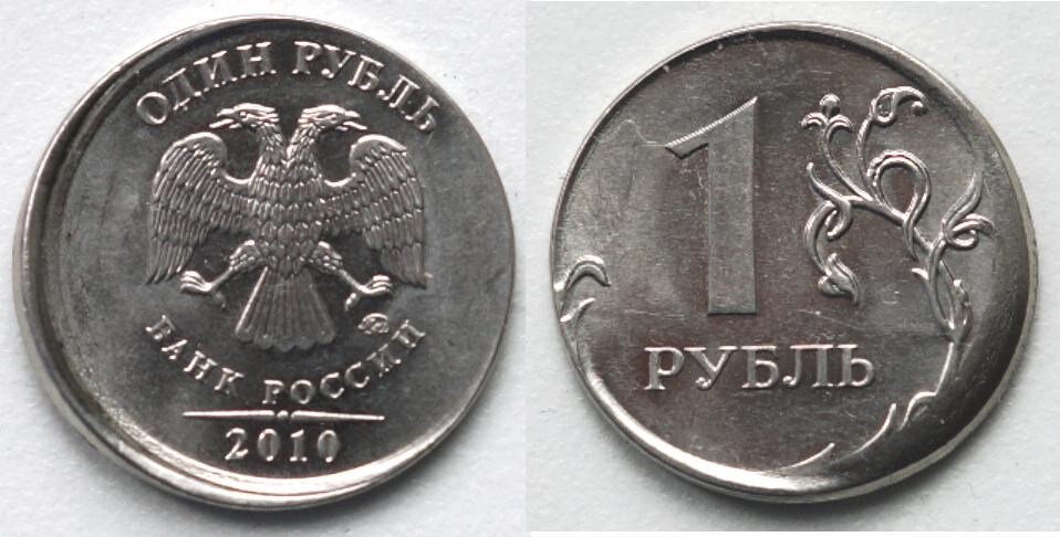 Из-за неправильного расположения заготовки в зоне чеканки изображение на одной или обеих сторонах монеты может сместиться. Это приводит к изменению ширины кольцевого канта по окружности монеты. Он становится неравномерным, а в случае значительных смещений возможен его разрыв, что особенно заметно на представленной монете. Подобный, вид брака очень распространен для монет всех достоинств. Часто это происходит, когда в момент чеканки заготовка находилась вне пределов чеканочного кольца (чеканка вне кольца). А вот такое сильное смещение при чекане встречается очень редко.