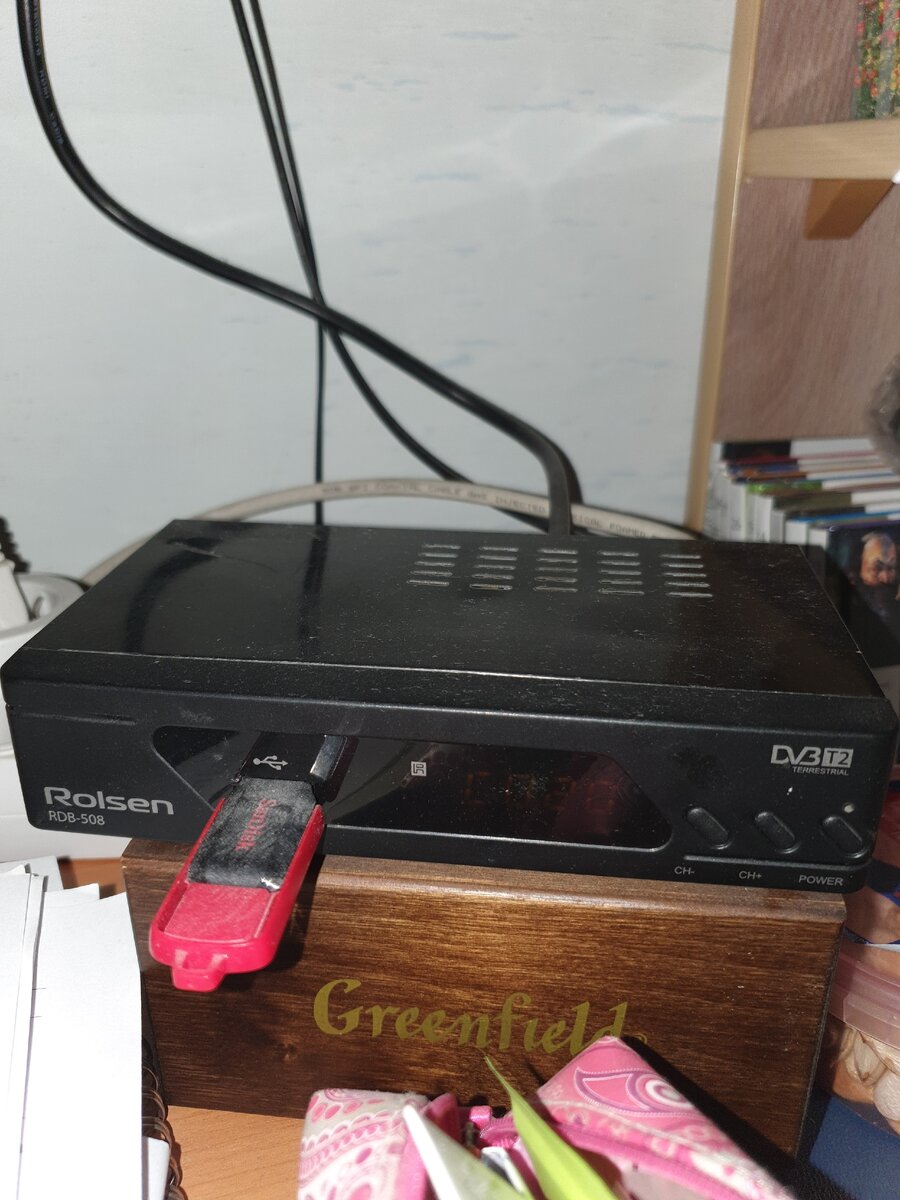Недавно в доме выключалось электричество, на улице всвязи с ЧП замкнуло фазу. И вылетели две тв приставки в разных комнатах одна BBK smp125hdt2, а другая Rolsen rdb- 508. BBK нормальная приставка , ничего плохого сказать не могу! Взорвался кондер 400 вольт 10 пикофарад. Ролсен, вроде как ожил, запускается. Ну и на том хорошо , хотя бы не две приставки покупать... Встал вопрос о другой приставке на кухне естественно. Посмотрел по магазинам Эльдорадо , Мвидео, в основном это либо Denn приемники , JI- приемники и Telefunken. Есть только с hdmi подключением , ну есть и со старыми добрыми тюльпанами. Ну и Telefunken к тому же и с кнопками управления на передней панеле. На пульте батарейки всегда могут в самый нужный момент " вылететь" или пульт куда то запропаститься. Нужно будет искать батарейки. А ннопки как раз и спасают! К тому же строгий дизайн и не маленький и не большой по размерам! На передней панеле приставки отображается время, когда приставка в нерабочем положении и либо