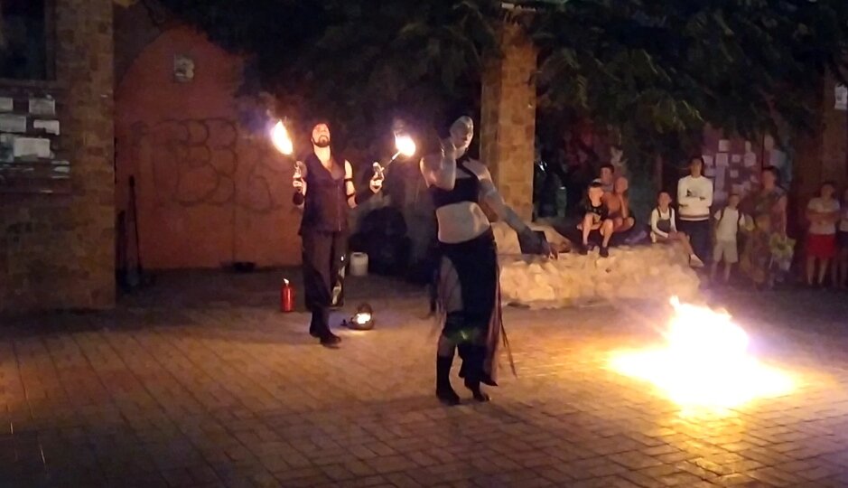 Выступление Театра Огня и Света "Рарог" на набережной Коктебеля.