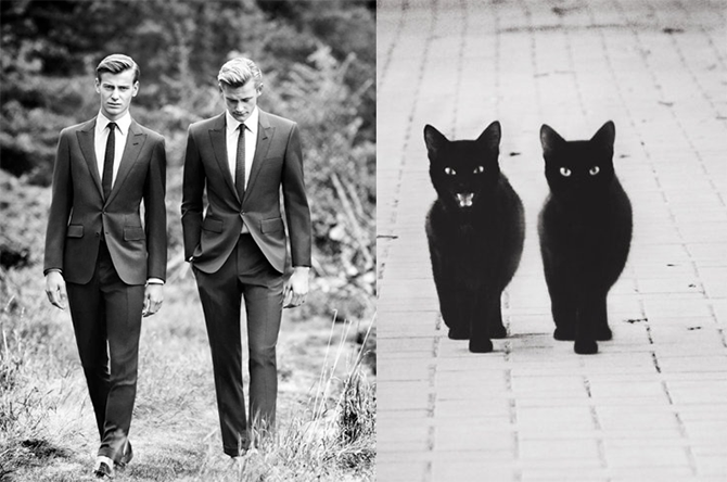 Продолжаем обзор типов мужчин и подражающим им котов. Коты и мужчины: какой тип выбрать? Часть 1. Коты и мужчины: какой тип выбрать? Часть 2. Коты и мужчины: какой тип выбрать? Часть 4. 1. «Мы с Тамарой ходим парой». Встречали ли вы когда-нибудь парня, который практически никогда не появляется в обществе один(без своего друга)? Тип этого мужчины «мы друзья – не разлей вода»: с твоим парнем всегда будет рядом его лучший друг (как некрасивая подруга). Поход в кино, театр или бар – вас везде будет сопровождать Коля(Вася), жизнь без которого вашему мужчине скучна и неинтересна. Если же, по счастливой случайности, друг не пошёл с вами (скорее всего заболела кошка или нужно к бабушке на дачу), то большая часть вечера будет посвящена рассказам о совместных приключениях вашего мужчины и этого Коли(Васи). Плюсы: В компании веселее. 2 головы хорошо, а 3 лучше: организовать свой досуг не составит труда. Минусы: Вы редко будете оставаться наедине, от этого много неловких ситуаций. Возможно,