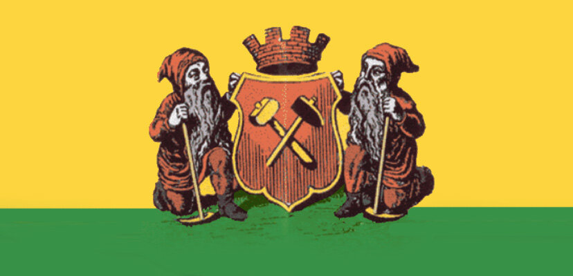 На заставке приведен один любопытный геральдический сюжет: два гнома с кирками в руках придерживают щит, на котором изображены скрещенные молот и кирка (или возможно обушок), вверху кирпичная корона. Несколько городов бывшей Российской империи претендовали на то, чтобы называть этот сюжет собственным городским гербом. Разбираемся, кто прав.