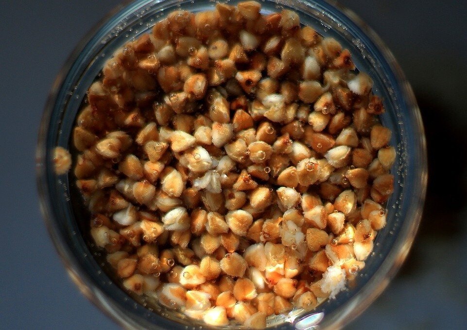 С вечера замочите в 1 стакане холодной кипяченой воды 4 ст. л. гречневой крупы. Утром добавьте 2 ст. л. овсяных хлопьев и оставьте на полчаса, затем туда же - 1 ст. л. мелко нарезанных сухофруктов: изюма, чернослива, курага и пр. Смешайте получившуюся кашу с 2 ч. л. мёда и медленно её ешьте, запивая травяным настоем.