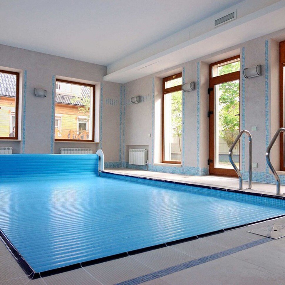 - Чтобы сократить затраты на обеспечение нормированных параметров микроклимата внутри помещения, бассейн требуется накрывать, когда он не используется;