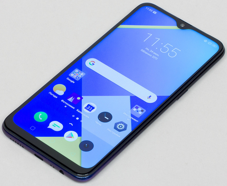 В верхней части экрана есть каплевидный вырез под одиночную селфи-камеру. Его нельзя назвать маленьким, он объективно больше, чем у многих смартфонов с аналогичным дизайном, так что выглядит грубовато, но, с другой стороны, и смартфон недорогой.