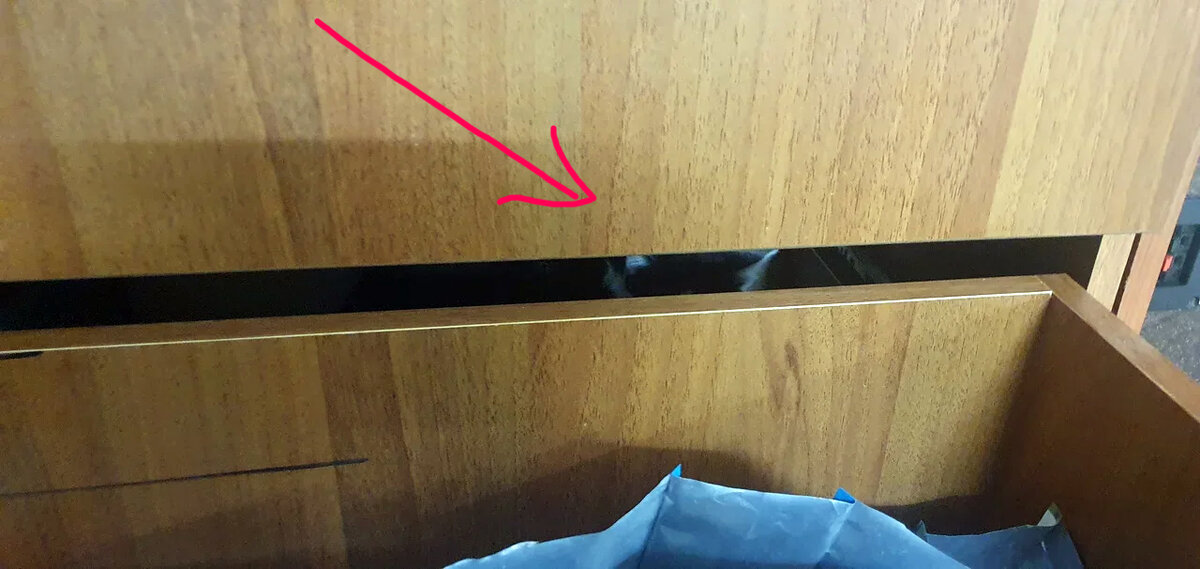 Мой мама пошла кормить котят утром и увидела, что ящик отодвинут, она хотела задвинуть, но не получалось. Она не стала сильно его задвигать, решив, что туда корм завалился...