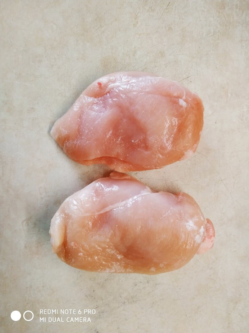Как же иногда хочется чипсов: под пивко, просто так, перекусить и т.д. Но все мы прекрасно понимаем насколько они вредные и как от них можно набрать лишний вес. Но замена есть:) Вкусная, достаточно быстрая и даже очень питательная. Мы с мужем очень любим куриное филе и как-то незаметно для себя открыли рецепт куриных "чипсов". Потрясающая закуска получается. Даже перекус. Они довольно сытные и, самое главное, вкусные:) Итак, для начала нам потребуется куриное филе. Я стараюсь выбирать более одинакового размера, чтобы и "чипсы" были такими же. Но это не важно. Кому как нравится. И, кстати, перед тем как их начинать готовить/нарезать, необходимо кинуть в морозильник минут на 20, облегчить себе работу:) (это при условии, что филе у вас было охлажденным). Нарезаем так, чтобы толщина составляла 0,5-1 см. Меньше не советую, так как они очень сильно при запекании "ужариваются". После добавляем специи, кому какие нравятся. У меня в этот раз: приправа для курицы, куркума, паприка красная, чер