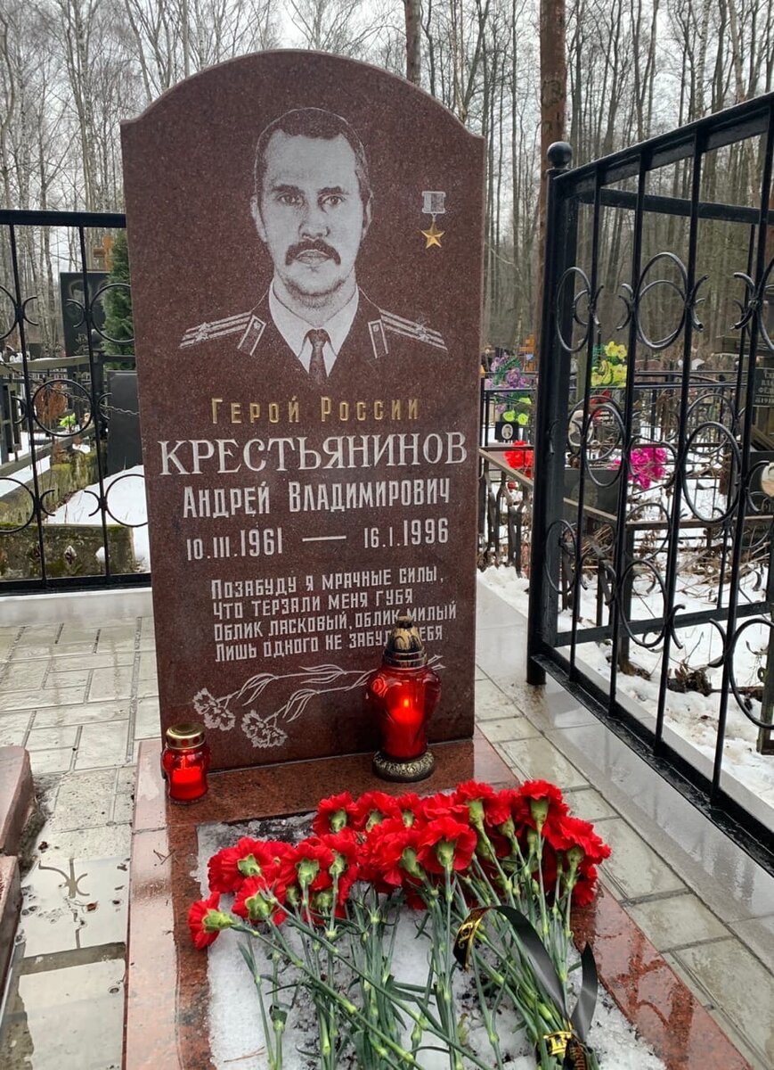 Когда-то, кажется совсем недавно, Николо-Архангельское кладбище не имело Геройской аллеи. Поэтому Герой России командир отряда Андрей Крестьянинов похоронен далеко в глубине. Но найти его могилу несложно - она находится рядом с последним земным пристанищем иеросхимонаха Сампсона, куда ведёт множество указателей. Тогда ещё не было Геройской Аллеи. И стихотворение у меня было одно: Мы собираемся опять, С годами больше матерея, Чтоб третий тост сейчас поднять За Крестьянинова Андрея. Официально открытие состоялось летом 2000 года. А потом понеслось... Здесь молчание громче, чем слово, Здесь кладут головою на запад. На Николо-Архангельском снова Душу рвут троекратные залпы... И мы платим геройскою кровью, Своей верностью, честью, отвагой. И опять на Аллее Героев Наши братья погибшие лягут. Тесен стал строй могил Геройского Погоста, и всё больше позывных навсегда ушли в эфир, не отзываясь... Облака будут в небе легки, Как душа с позывным хлёстким "Крест". И придут поутру мужики... А