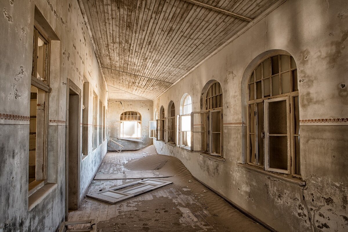 Я увидела этот город во время путешествия по Намибии, к сожалению, только с воздуха, когда мы пролетали над этим местом недалеко от Людерица. Я спросила у летчика, что это за руины, и так впервые услышала название города Колманскоп. А потом уже прочитала удивительную историю этого места. Его история началась в 1908 году, когда в пустыне впервые были найдены алмазы в песках и это положило начало алмазной лихорадки. Жажда наживы привела в эти места много авантюристов, одержимых желанием быстрого и легкого богатства. А количество алмазов в пустыне долгое время питало эту жажду и дарило надежду, что так будет вечно. Может, именно поэтому город строили с размахом, веря в его бесконечное будущее. Говорят, безмерная алчность людей прогневила богов и драгоценные камни на поверхности неожиданно закончились. Ожесточённые раскопки намибийской пустыни дали понять, что горячие пески не скрывают никаких сокровищ. Одни говорили про насмешку судьбы, другие во всём винили проклятье. По окончании Первой Мировой войны славе Колманскопа пришел конец.