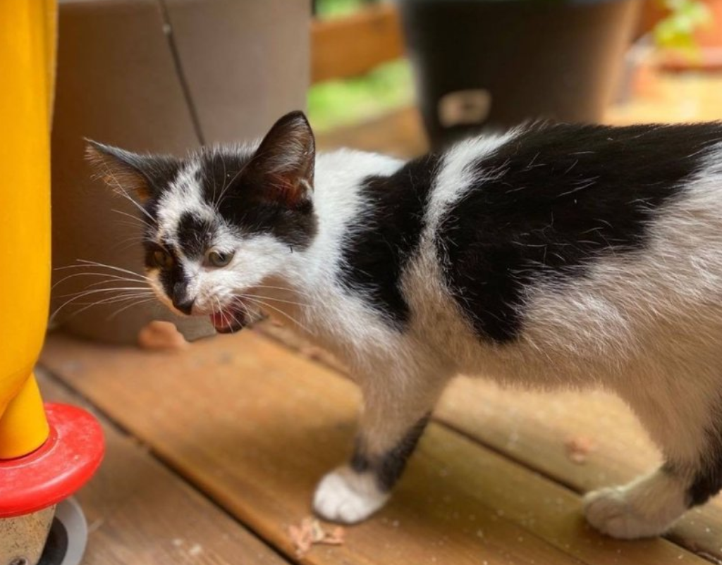 Бездомная кошка отчаянно мяукала у двери дома