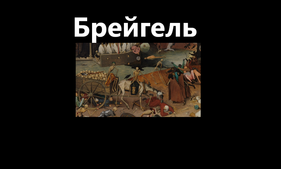 и его "Триумф смерти" А в 16 столетии умели веселиться! Чувство возникает то же, что при рассмотрении работ Босха. Много частного, а целого — мало. Разберемся, плавали, знаем. Первое ощущение — безысходность, ад, муки пока всё по плану Выжженная земля, пожары, повсеместный мор и куча костлявых существ. Даже помимо скелетов. Посмотрите на их коней и собак: Вообще, кому тут действительно весело — это скелетам: Но обратим внимание на собравшихся несчастных. Еще живых или уже не очень. Тут есть богачи: Есть смельчаки: Есть безразличные: Крестьяне: Темнокожие (часто встречаются и у Босха, надо сказать): Теперь объединим детали Смерть, в виде толпищ скелетов, добирается до каждого — богатого и бедного, короля и крестьянина. С ней можно бороться, а можно ей не противиться, как делает парень с лютней. Результат все равно один.
