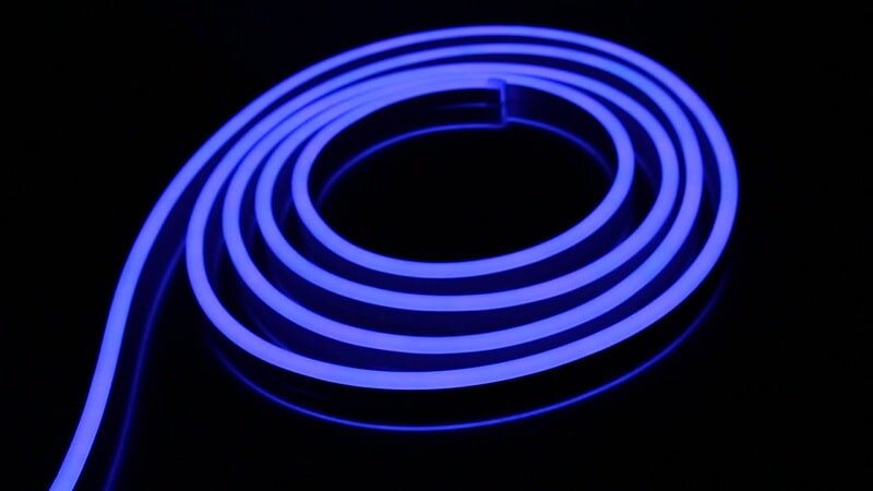 Гибкий неон по своей структуре близок к светодиодной ленте, если речь идет о светодиодном неоне, более современной его разновидности. Еще существует электролюминесцентный неон, который представлен тонким проводом. Он обработан люминофором и залит полимером.