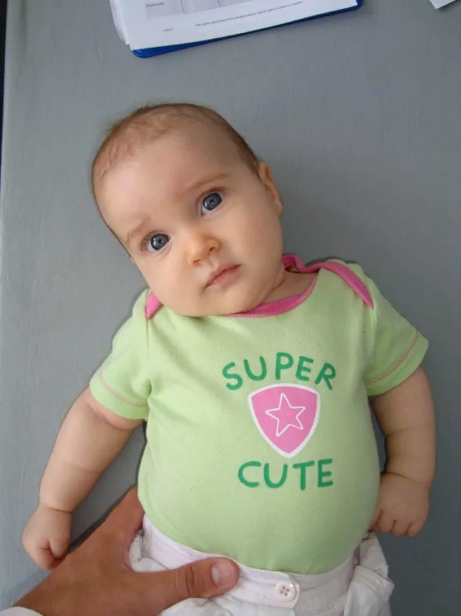 1. Кривошея диагностируется в роддоме или при первых обследованиях ребёнка у хирурга. Это спазм мышц с одной стороны, его заметно, если малыш поворачивается только вправо или только влево, запрокидывает головку, разворачивая лопатки. Если не исправлять ситуацию, уже к полугоду наметится ассиметрия лица, искривление всего позвоночника и даже косоглазие.