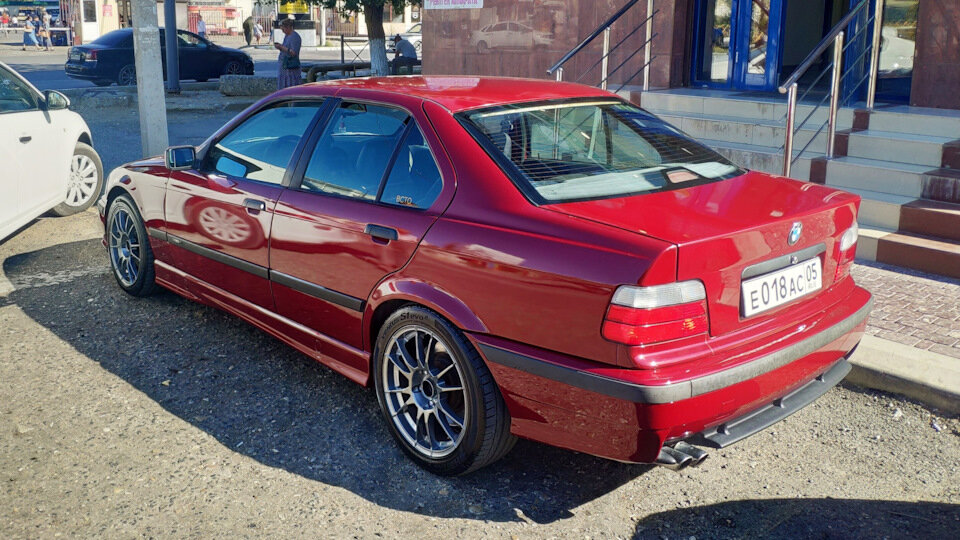 Начинаю восстанавливать. . Извиняюсь за то, что не смог сохранить фото-восстановительных работ. Так сказать промежуточный этап в процессе восстановления. Начиная от "рихтовки" заканчивая сборочной работой уже покрашенных у моляра деталей. НО! Есть видео по восстановлению и вот на него ссылка — https://youtu.be/C_ov3DtEu6Q Итак, начнём. Что мы имеем: *ЗАД — мятое крыло (рихтовка всей задней части — 10к) — разбитый правый фонарь (решил купить пару, но уже от рестайлинга, у меня стоял дорест — 5.3к за пару) — разбитый бампер (стоял сток, купил М3 — 15к) — раздолбанный привод (замена привода — 3.5к. привод+замена) — кривой рычаг (сам рычаг+замена — FREE, спасибо за это bmw_garage05 — погнутый диск (купил новые диски "OZ RACING ULTRALEGERRA — 24к), вы уже их видели тут Сумма (57.8к) *ПЕРЕД — разбитая левая фара (купил новую — 5.5к) — разбитый бампер с усилителем (новый бампер м3 — 7.5к, усилитель — 1к) — мятая решётка с ноздрями (новая решётка — 1.5к, ноздри — 1.5к) — мятый капот (ри