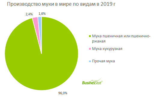 С 2015 г по 2019 г производство муки в мире выросло на 4,5% и достигло 233 млн т.
