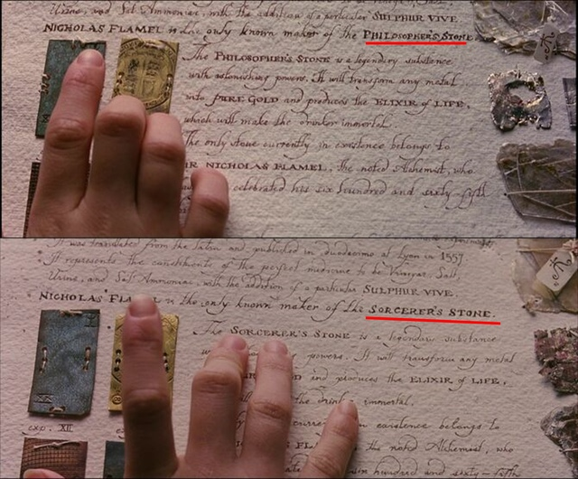 У первого фильма о Гарри Поттере есть несколько названий. Так, например, в Европе он называется "Гарри Поттер и философский камень" (Harry Potter and the Philosopher's Stone),а в Америке - "Гарри Поттер и волшебный/чародейский камень" (Harry Potter and the Sorcerer's Stone).