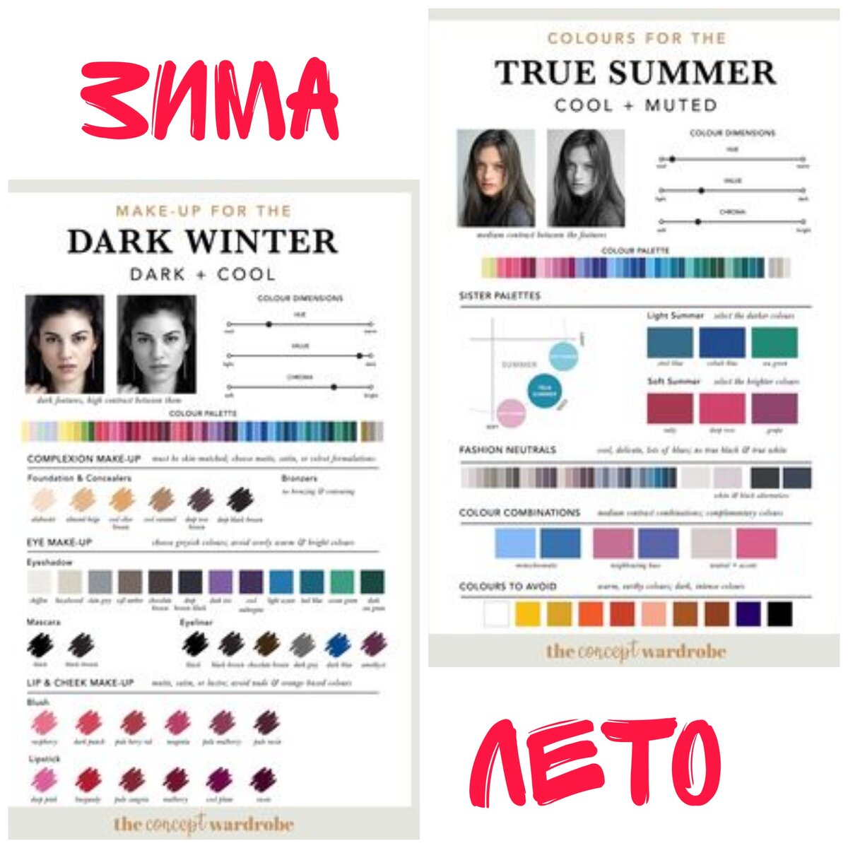 Привет! Меня зовут Эстер, и добро пожаловать на мой канал. Когда я написала свою первую статью про цветотипы, вы просто порвали комментарии: споры о том, работает она или нет, продолжаются очень долго. Но практика показывает, что теория более чем рабочая, и сейчас еще раз я вам это покажу. Сегодня на примере звезд я еще раз покажу, что правильный оттенок волос, одежда и макияж могут сделать вас привлекательнее. Погнали... Какому цветотипу какие цвета подходят в макияже - ссылка будет внизу. 1. Адель На примере Адель можно опровергнуть самый тупой стереотип, что черный идет всем - далеко не всем. Адель просто потерялась в нем, он ее не освежает и не красит. Рядом она же с похожим макияжем, но уже явно помолодевшая, в освежающем зеленом цвете. Оттенки в "правильном" макияже более персиковые. 2.Аманда Сейфрид Эксперимент провалился, так как черное платье придает декольте девушки нездоровый вид, плюс, яркий "зимний" макияж ей совсем не идет. На фото справа ей подобрали правильный макияж