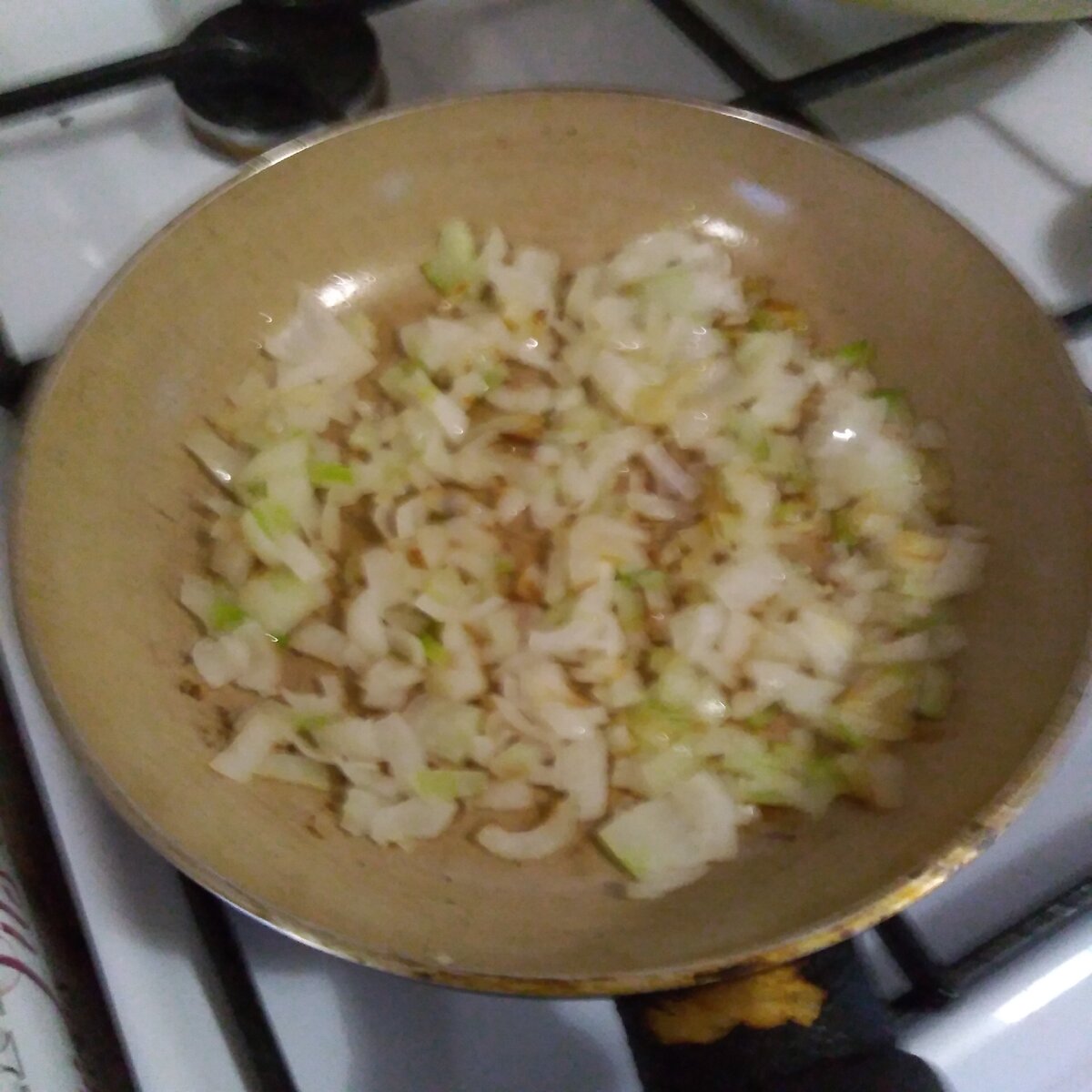 На сковородку с разогретым растительным маслом выкладываю нарезанный репчатый лук и слегка его обжариваю до мягкости.