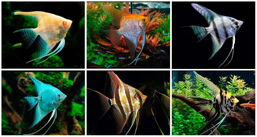 В современной аквариумной культуре можно встретить большое количество разновидностей скалярий, отличающихся цветом, размером и формой плавников.
