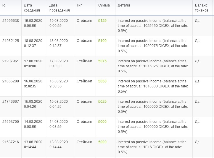 Итого за одну неделю я получил - 3,5% или 35 375 токенов Digex.