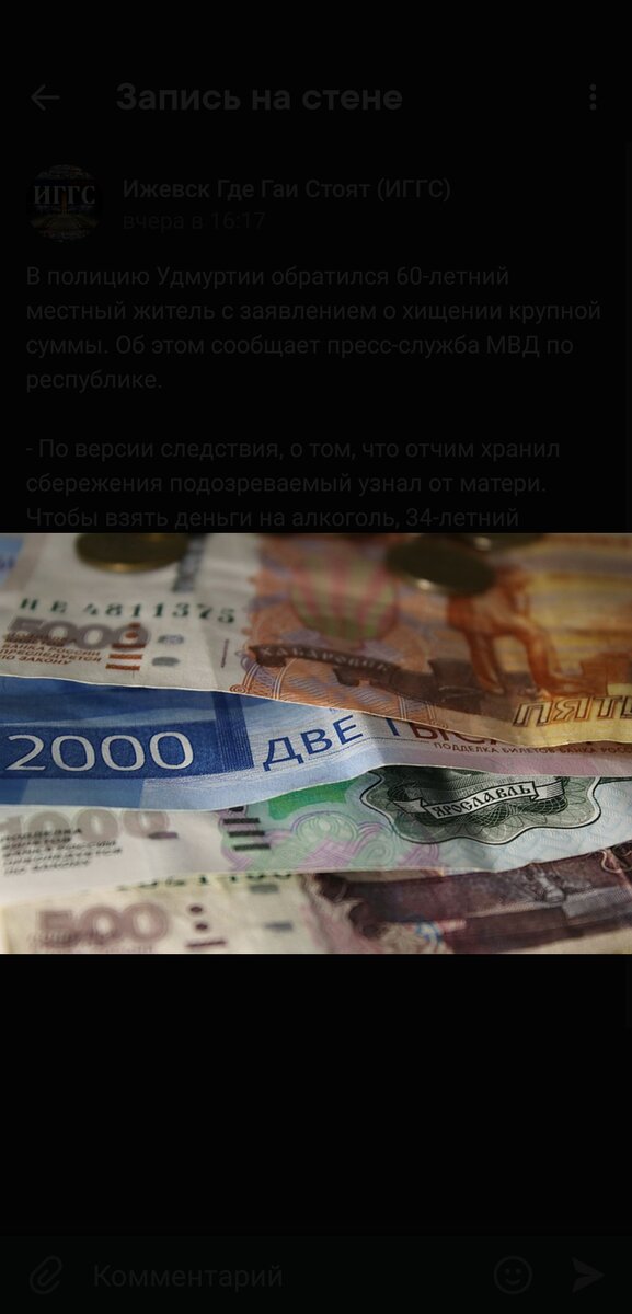 В полицию Удмуртии обратился 60-летний местный житель с заявлением о хищении