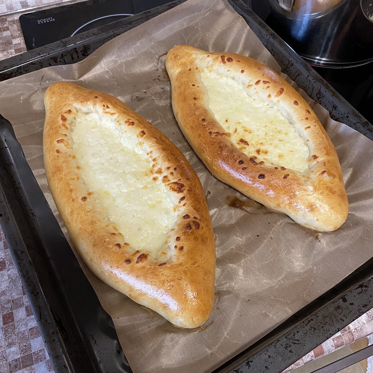 На готовлю хачапури положить кусочек масла, перемешать, добавить сырой желток.