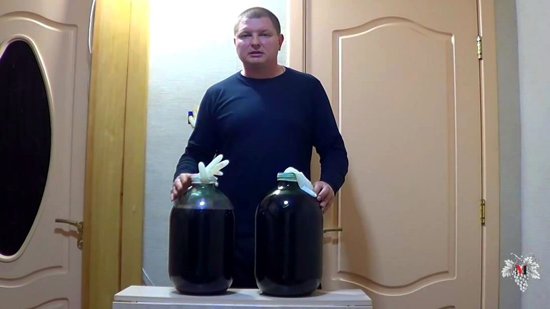 Здравствуйте, с Вами снова Владимир Маер. В данном выпуске я расскажу Вам о приготовлении вина в домашних условиях. А именно, я расскажу Вам о стадии тихого брожения домашнего вина. Тема данного выпуска возникла благодаря большому количеству комментариев с вопросами по приготовлению вина в домашних условиях. Вопросы в основном касались периода брожения вина – особенно они касались того, почему у них вместо вина получается газировка или шипучка. Сейчас я постараюсь дать ответ на этот вопрос. В основном данная проблема возникает потому, что не был выдержан процесс тихого брожения. Стадия тихого брожения должна длиться от 40 до 90 дней, иногда данный процесс может длиться более продолжительный период, нежели 90 дней. В процессе приготовления вина нужно очень внимательно следить за стадией тихого брожения, а именно, закончилась она или нет. Выше и ниже на фотографиях вы можете видеть два десятилитровых бутылька с будущим вином. Судя по перчаткам, в одном бутыльке процесс брожения вина ещё