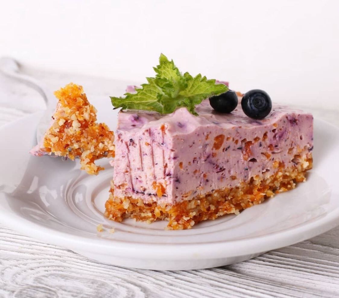 Творожный десерт без выпечки!🍰 ✅КБЖУ:195/11/10/15 ⠀ Основа: ▫️40 г орехов (У меня фундук) ▫️40 г кураги ⠀ Творожный слой: ▫️120 г творога 5% ▫️50 г молока ▫️50 г чёрной смородины (любые ягоды) ▫️40 г кураги ▫️5 г желатина ⠀ ▫️Орехи измельчить в крошку в блендере. Курагу, если твердая, необходимо замочить. Затем добавить к орехам и измельчить. ▫️Для творожного слоя в горячем молоке растворить желатин, не доводя до кипения. ▫️В блендере взбить творог с черникой, курагой. Затем добавить молочную смесь и еще раз взбить. ▫️Форму застелить пищевой пленкой. Выложить основу, а затем творожную массу. Убрать в холодильник до застывания. ПП рецепты🍏 |