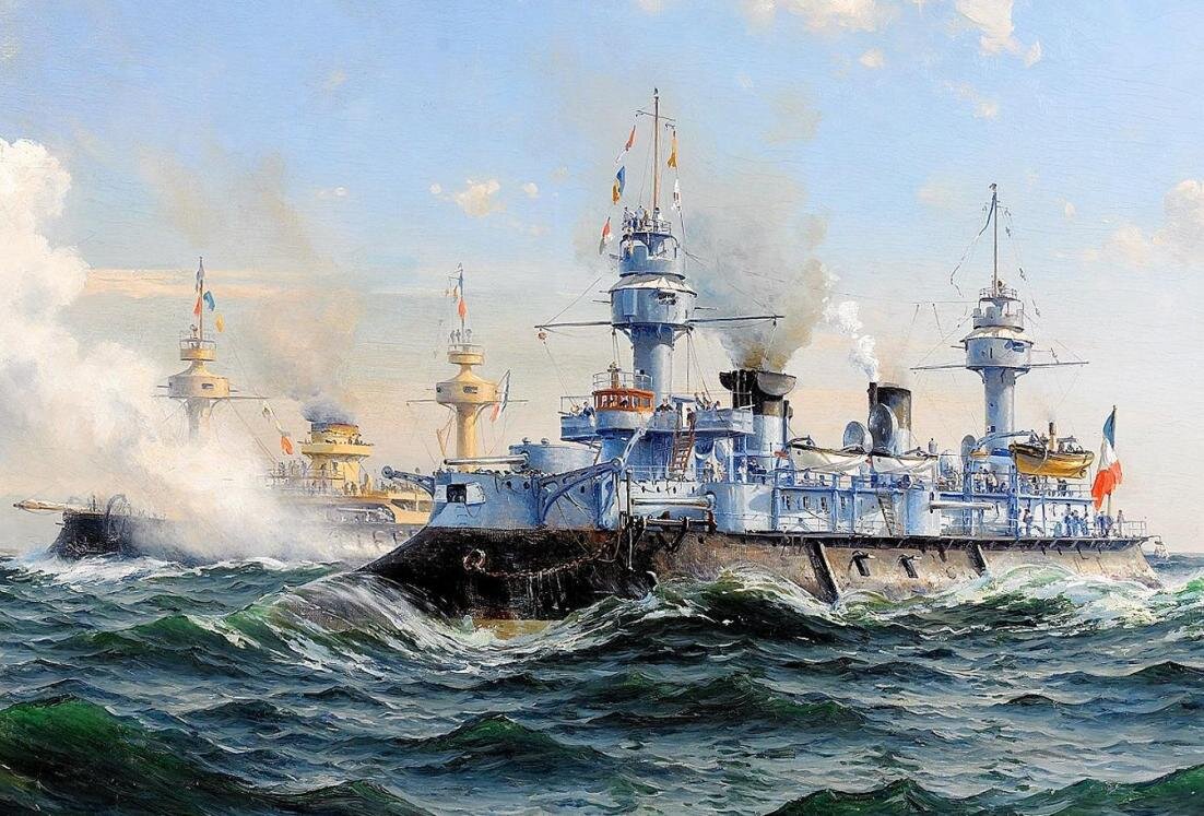На три вещи можно смотреть бесконечно-как горит огонь,как течет вода и как Англия с Францией меряются своими военными флотами. К середине 80-х французы уже нагло дышали в спину "владычице морей",их броненосные эскадры были лишь немногим меньше,зато сами корабли,как признавали британцы,значительно лучше,а многочисленные крейсера готовы были сделать вопрос доставки продовольствия и сырья в метрополию делом дорогим и опасным.